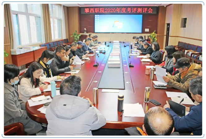 2021年 1 月 15 日上午 8:30,攀西职院在二实训楼四楼会议室举行2020年部门和中层干部年度考评民主…