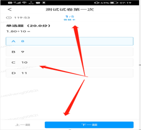 ⑨答题结束可以上下滑动,检查整个试卷的答题情况,检查结束点击【交卷】。